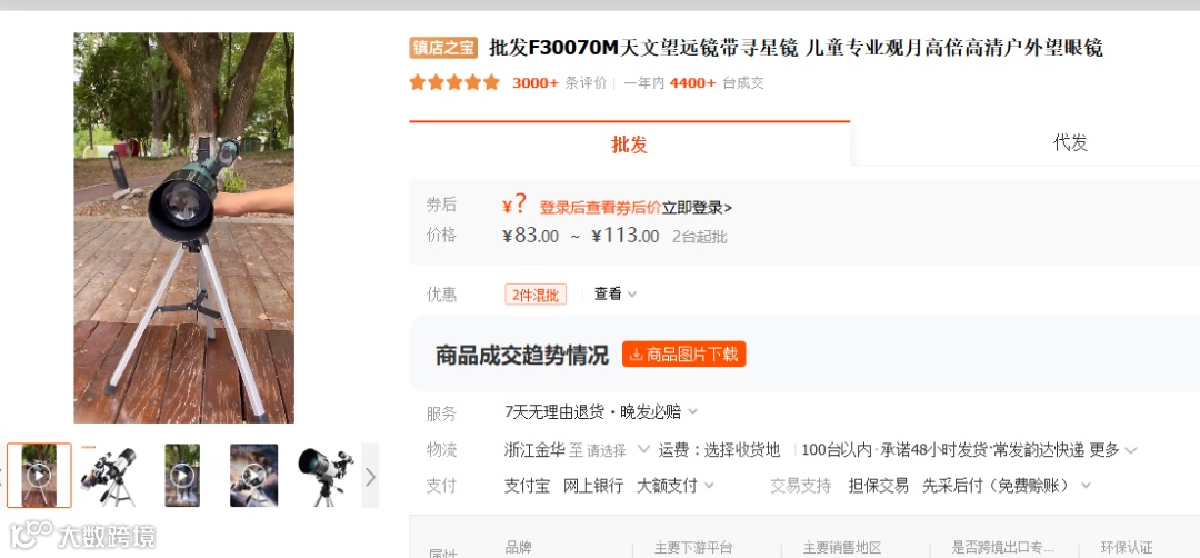 - 亚马逊:首选渠道。70mm口径入门级望远镜月销可达2000+件,建议注册专业卖家账号(39.99美元/月),使用FBA发货,并重点投入Q4黑五与圣诞广告;