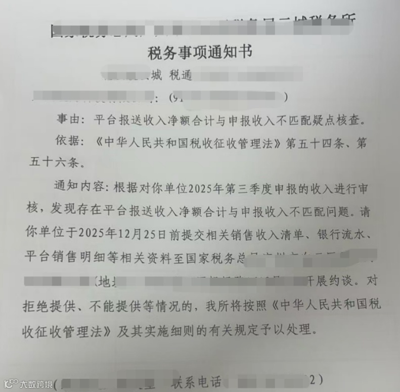 近期,部分广东地区亚马逊卖家收到税务机关发出的《税务事项通知书》,要求就2025年第三季度申报收入与平台报送收入净额存在差异的问题提交资料并接受约谈。