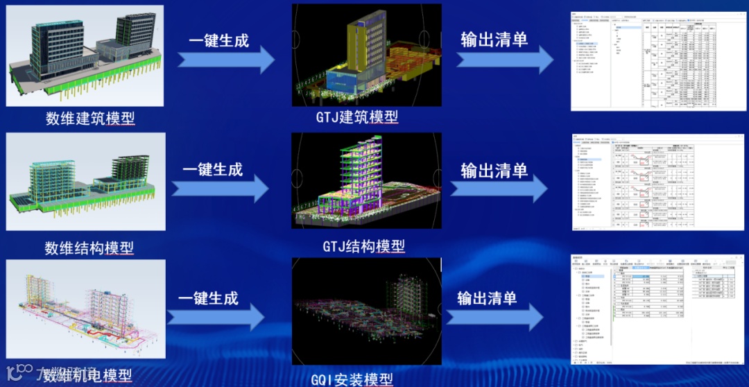 根据项目管理进度要求,设计师在设计过程中阶段性导出土建GFC文件,造价师导入文件至造价软件中一键生成算量模型,快速将项目成本反馈至设计阶段,大大提高了设计算量的整体效率,同时保证了项目不超概。