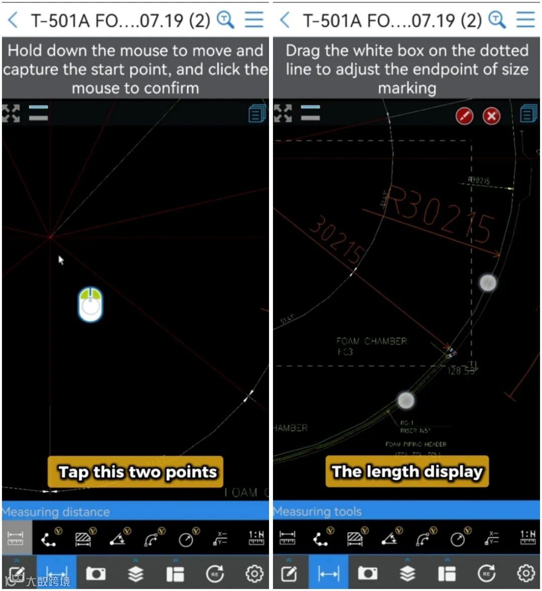 使图纸上没有给出半径或长度,我们也可以用CADReader的测量功能轻松获取数据: