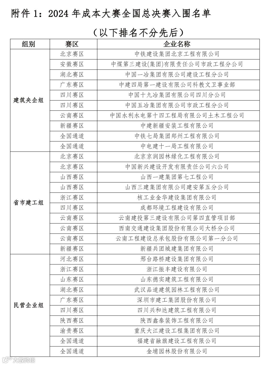 关于公布成本大赛全国总决赛入围名单、全国优秀案例获奖名单、赛区赛优秀案例获奖名单暨举办全国总决赛评选事宜的通知