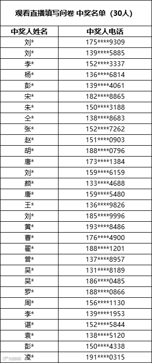 调研有礼中奖名单公布