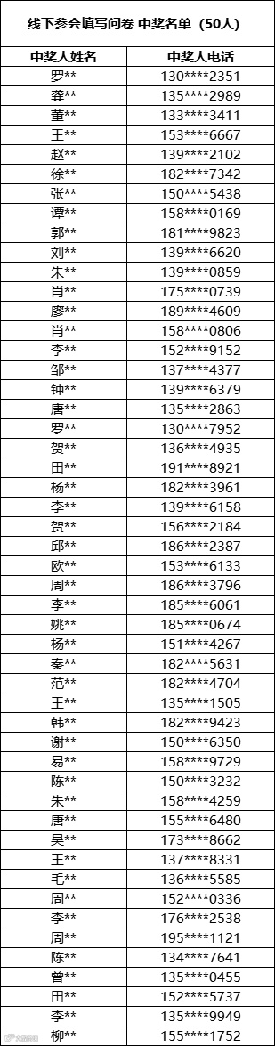 说明:本次抽奖的规则是按填写问卷顺序,每逢序号5的倍数,视为中奖人员。