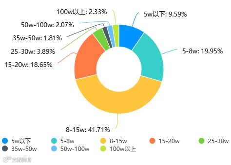 主流区间:41.71%年薪8-15万,15-20万占18.65%