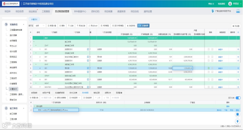 在济南某医院项目的全程跟踪审计及结算审计服务中,山东公平充分利用数字新咨询生产力平台BIM+全过程造价管理模块,超出了委托单位的期望,获得了较好的经济和社会效益。