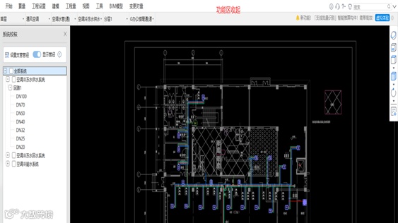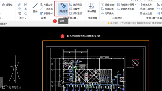 ● 识别管道:一键框选,AI智能识别管道及系统,冷媒管和空调水管同时识别,一个功能,一次操作,全部搞定。