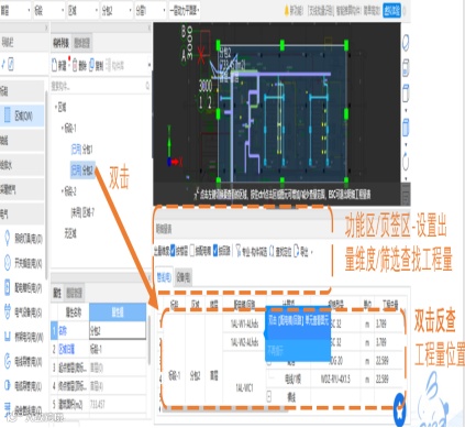 ● 查量:实时查看当前区域内全专业的工程量,并能自动定位所在位置。