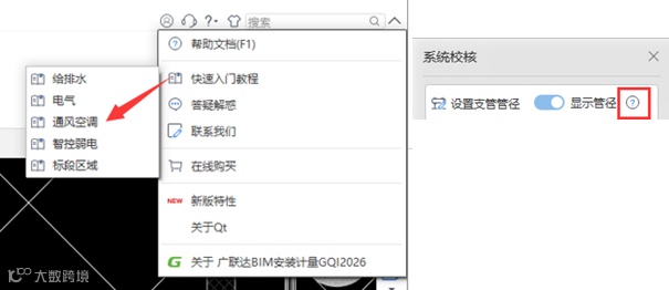 帮助指引:【识别管道】功能内系统校核窗体上方点击“问号”,即可调出操作说明