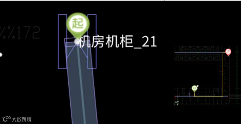 3、点击工具条中设置起点按钮,对应图元增加起点标识。上步骤同样的方式查找到对应的终点机柜,设置终点(也可先设置终点再设置起点)