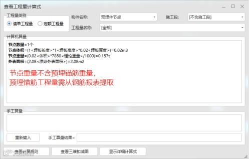 预埋锚筋在钢筋报表中提量其它钢筋可计算节点处的措施筋或连接筋等,保证钢筋完整出量。