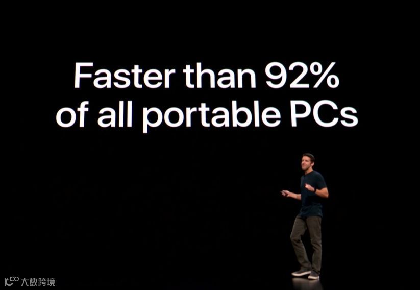 苹果甚至表示,就 A12X 仿生的 CPU 性能而言,已经超过了过去 12 个月时间里市面上 92% 的便携式 PC,无论哪个顶级 PC 厂商的笔记本电脑竞品均无法企及。