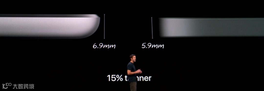 全新 12.9 英寸的 iPad Pro 大小基本就与常规大笔记本纸张大小差不多,机身只有 5.9mm 的厚度,比上一代薄了 15%,成为有史以来最薄的 iPad,同时成功将体积减少了 25%。