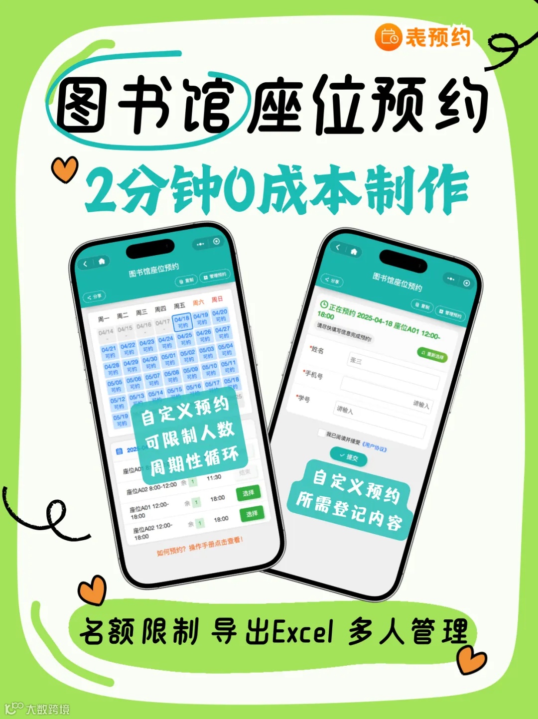 如果你们也是图书馆/自习室管理员,还在为座位预约的事烦心,真的可以试试表预约小程序。不需要复杂的技术,跟着模板改改选项就行,花不了多少时间,却能省不少事。