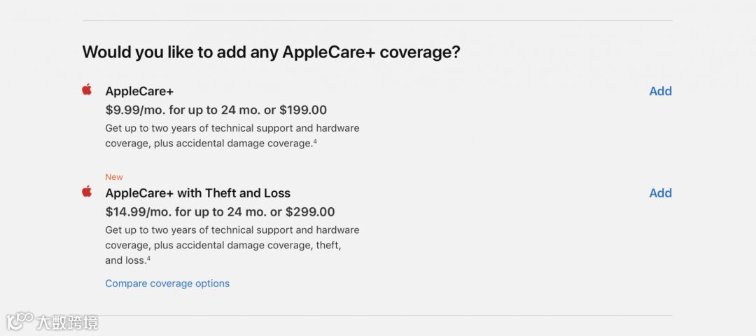 目前,中国区苹果官网上的 AppleCare+ 服务并未出现任何改动,但是小编在美国区苹果官网上发现,除了标准服务之外,适用于 iPhone XS、iPhone XS Max 的 AppleCare+ 已经增加了一个新的被盗/丢失选项,价格为 299 美元,分 24 个月支付的话,每个月需要支付 14.99 美元。一旦设备丢失,用户可以获得 269 美元的免赔额。