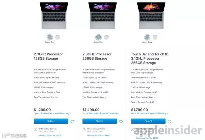 不过从图中也不难看出,苹果并没有禁止购买,只是表示现在购买6月4日才能够送到。所以猜测苹果应该不会对 MacBook 和 MacBook Pro 产品线有过多的调整,或许会把在售的七代酷睿换成最新的八代酷睿,价格和其他配置都保持不变,大家期待的 Face ID 等功能暂时无法出现在 MacBook 产品线上了。