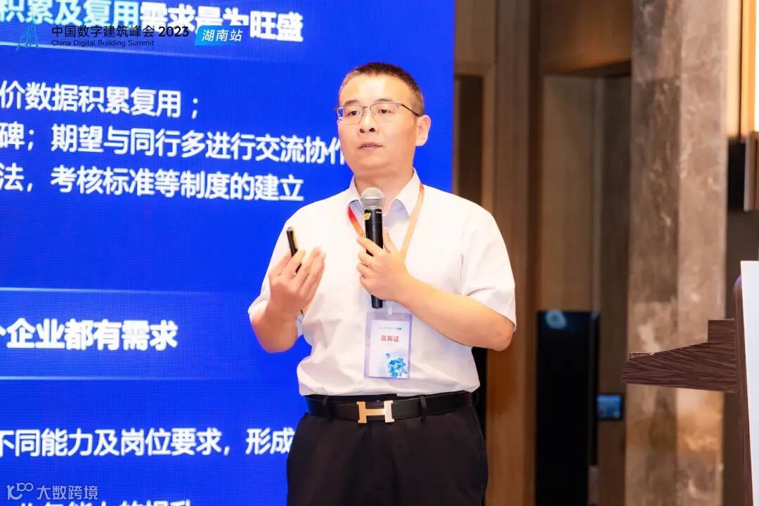 此次咨询企业家论坛由湖南省建设工程造价总站领导谢小成发表致辞。他表示当前,数字化已经成为推动建筑行业创新发展的重要力量。作为中国数字建筑峰会的一部分,咨询企业家论坛的召开旨在促进数字化建设经验的分享与交流,推进我们行业的转型升级。数字化建设对于咨询企业来说既是挑战,更是机遇。在这个变革的时代,咨询企业需要积极拥抱数字化,不断强化技术创新和应用。