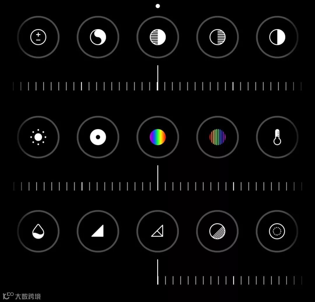 看到这里你应该发现了 iOS 13 照片编辑工具 UI 界面的变化,将之前藏在二级菜单中的工具以圆形图标的形式直接显示在图片下方,便于对照片进行快速调整。此外,点击相应项目的圆形图标后,系统会自动针对照片对该项目进行单独调整,再点击一下,则可以取消调整。