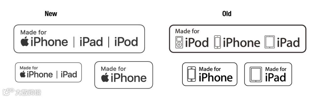 其次,产品的排序变了,此前三款产品是由发布时间顺序排列的:iPod、iPhone和iPad,但是现在iPod早已经成为了边缘产品,iPhone占据了苹果生态的绝对主力,所以苹果将顺序改成了:iPhone、iPad和iPod。说不定在过段时间,MFi认证的logo里就有可能见不到iPod了。