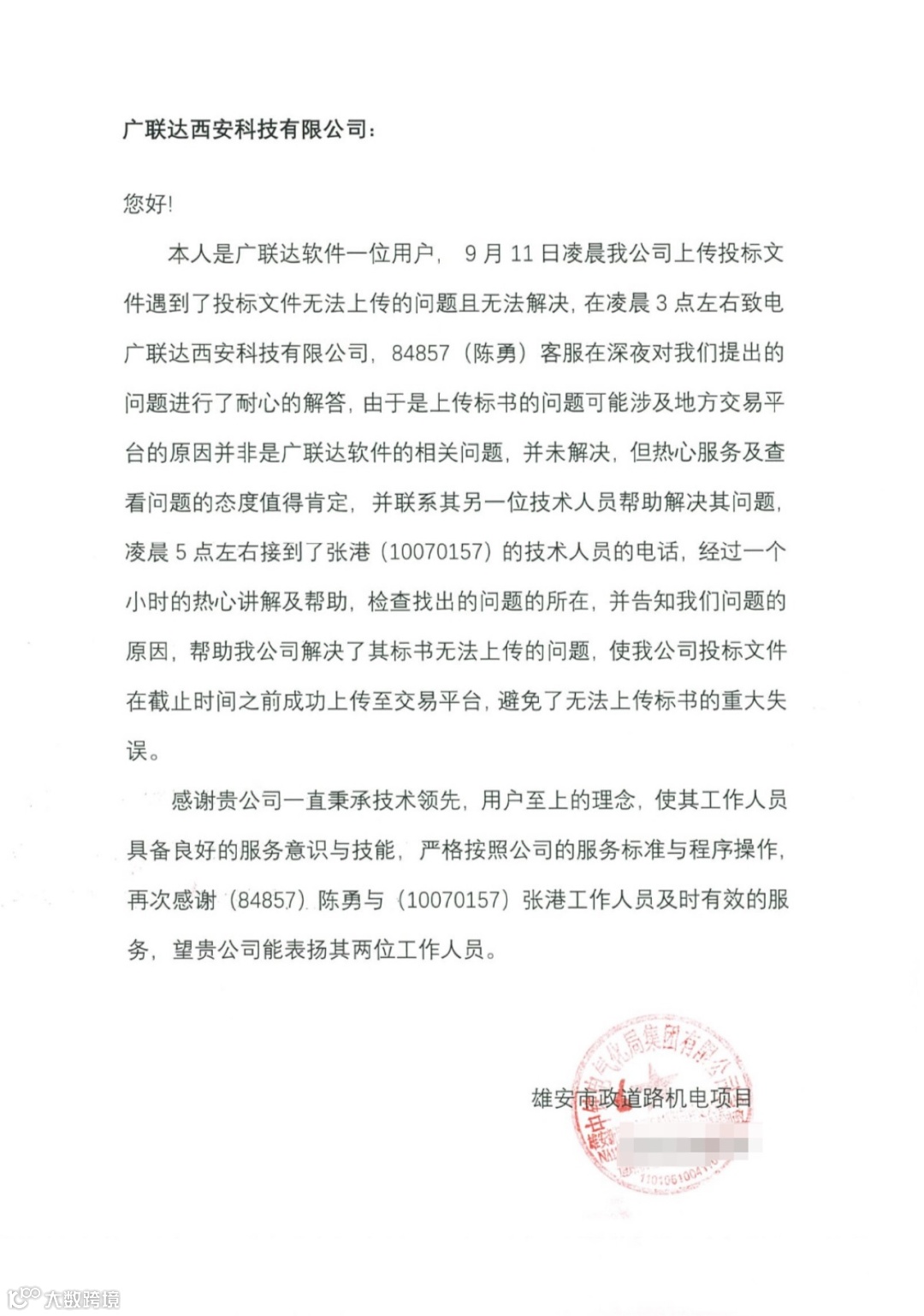 最终用户在清晨六点左右成功上传了标书,“根本不敢想象在如果在九点前没有上传标书的后果”用户说道,并发了一封感谢信到公司,表示对我和小张的认可和感谢。