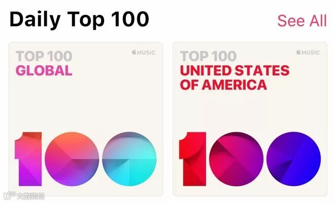 本周五,苹果为 Apple Music 新添加音乐排行榜功能,包括 116 个国家和地区的 Top 100 以及全球 Top 100 的歌曲列表定期更新,允许订阅用户查看当天最受欢迎的歌曲,并在其中发现新歌。