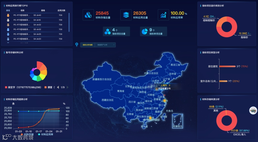 1、企业内部把工程数据材料和分包数据存入数据库,数据自动标识导入时间;