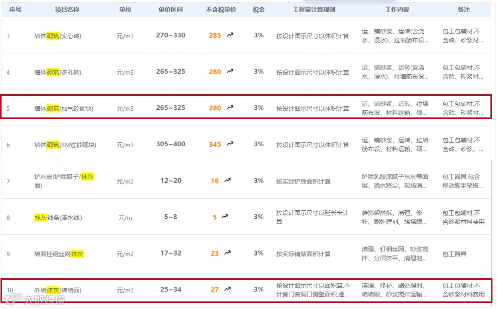 根据劳务班组的报价,在指标网查询对应劳务科目价格进行对比,偏高的劳务价格进行标注,与劳务班组进行议价,截图作为依据进行谈判。