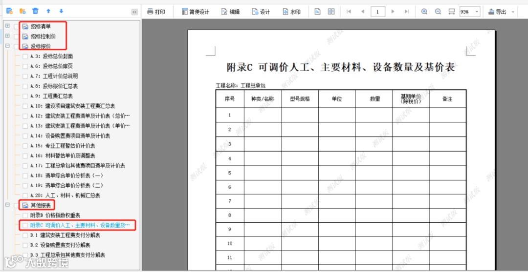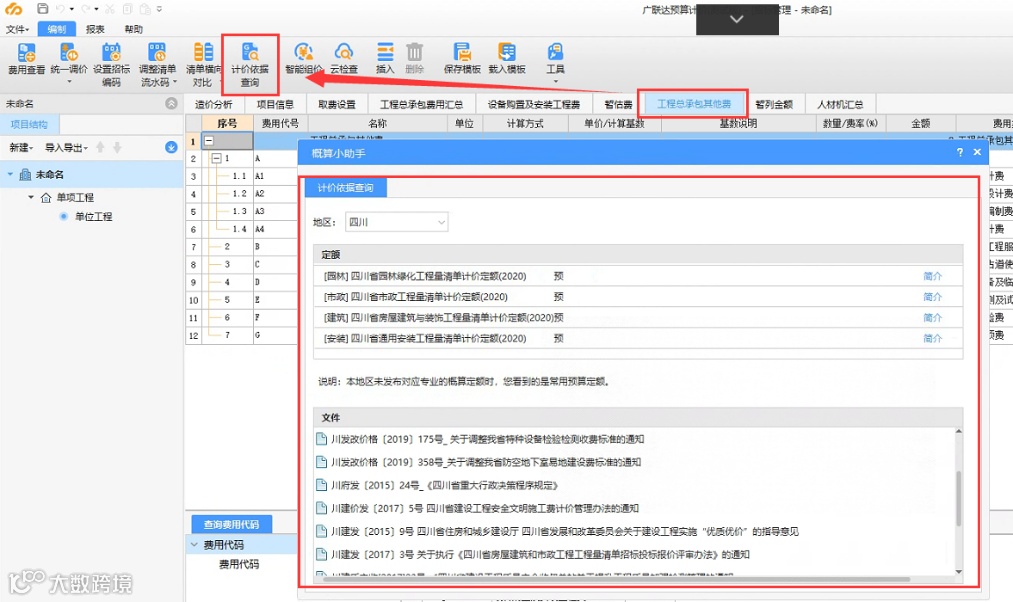 点击组价方式可划分到单价部分、总价部分或暂估价部分,报表功能会对应的分发到对应的报表。
