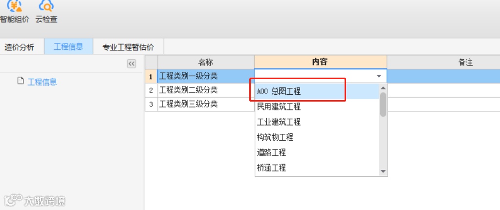 需在【单项工程-工程信息】完成工程分类选择,方能加载完整清单编码。