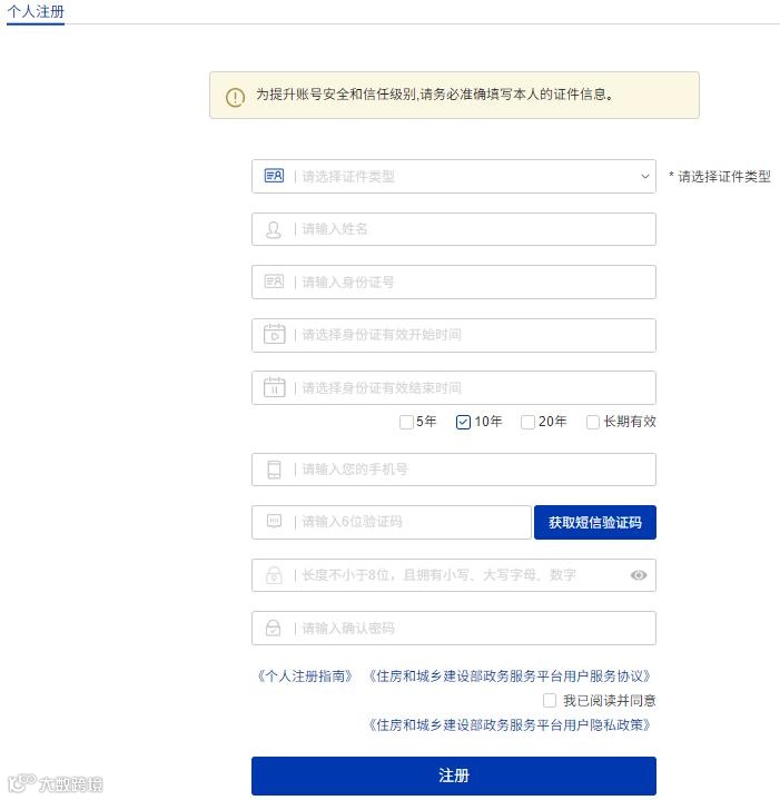 ⑩待住建部审批公告结果后,返回数据,初始注册完成。
