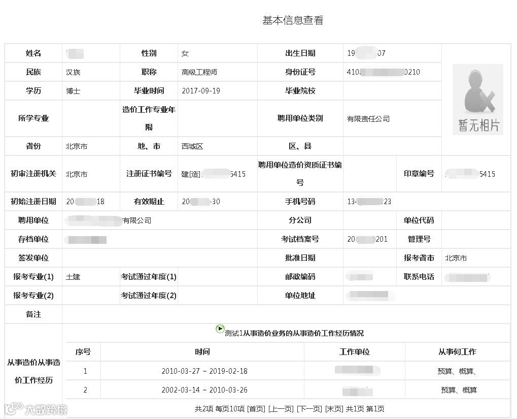 点击“添加从事造价工作经历”,可添加本人从事造价业务的工作经历,点击“提交”按钮。