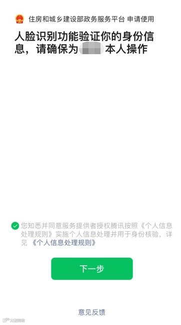 ④使用住房和城乡建设部政务服务平台小程序,扫描二维码进行人脸识别认证;