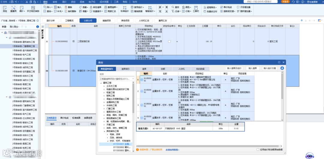 典型清单指引&组价方案:计价中内置标准化清单模板和项目特征,支持一键套用,减少手动输入。