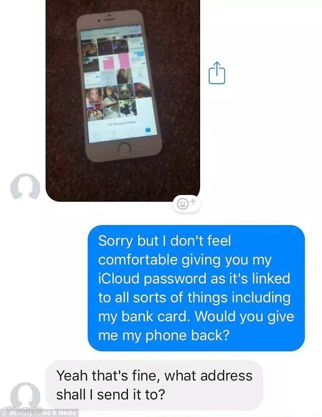 英国的心理学学生 Beth Freestone 最近就遇到了一件非常非常奇葩的事情。她在曼切斯特的一个夜晚,被人偷走了一部 iPhone ,事情到这里并没有结束。在几个月之后,这位 18 岁的女孩惊呆了,因为她在 Facebook 上接到一个女人的消息,声称她找到了自己的电话,并要求 Beth “献上”自己的 iCloud 密码,以便她可以使用。