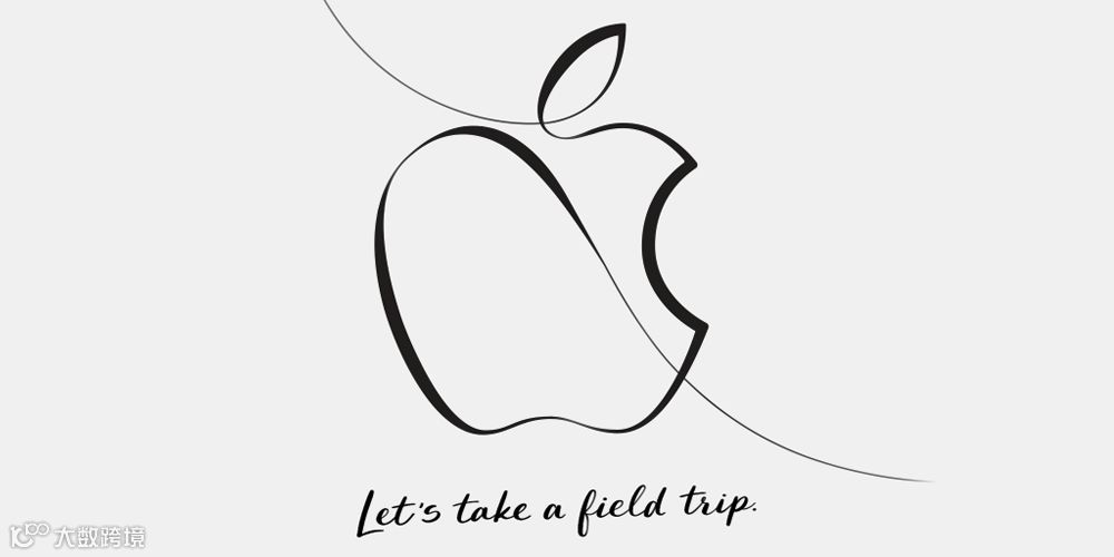 邀请函上绘有醒目的花体苹果 LOGO,线条有点像 Apple Pencil 在 iPad Pro 上的压感笔触,而下方宣传语写着“Let's take a field trip”,在中文邀请函里,官方将这句话翻译为“同学们,来次课外活动吧”。