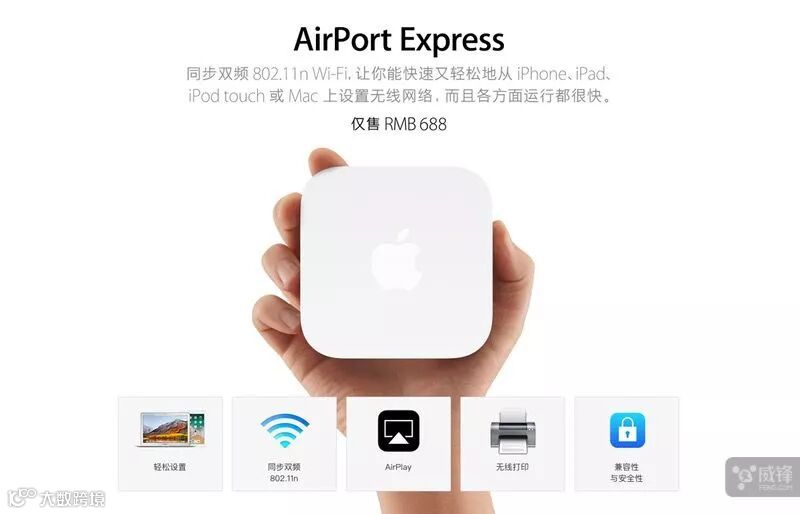我们还是来介绍一下 AirPort 产品,和一般的路由器不同,Time Capsule 中的内置了 Time Machine 备份功能,而 Express 甚至支持 AirPlay 和无线打印功能。