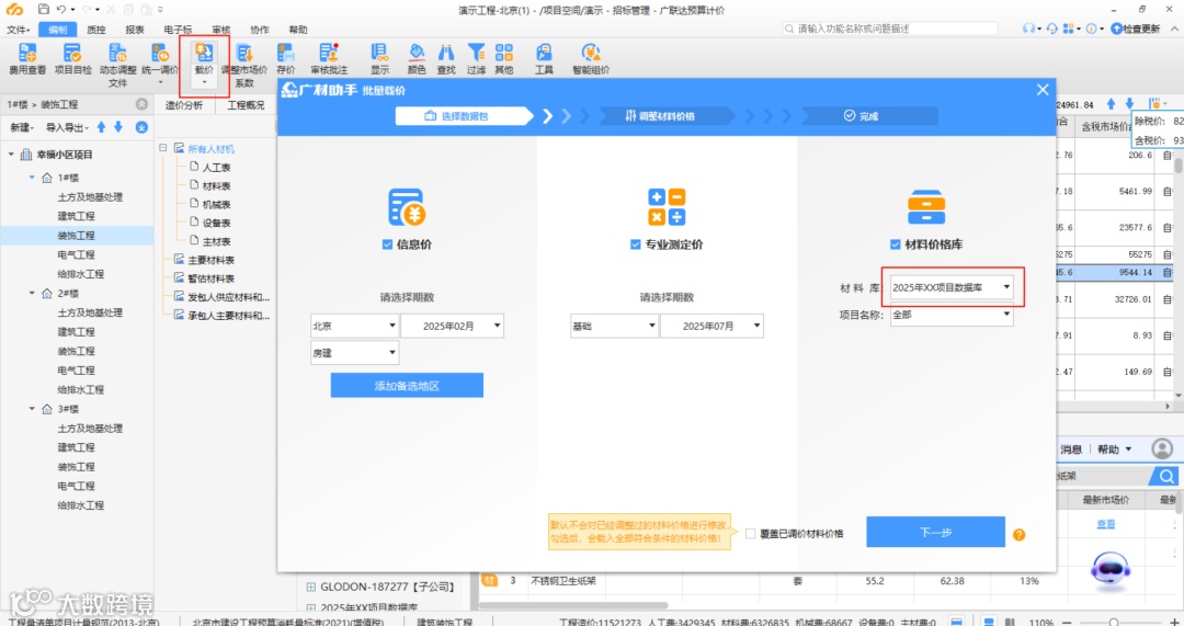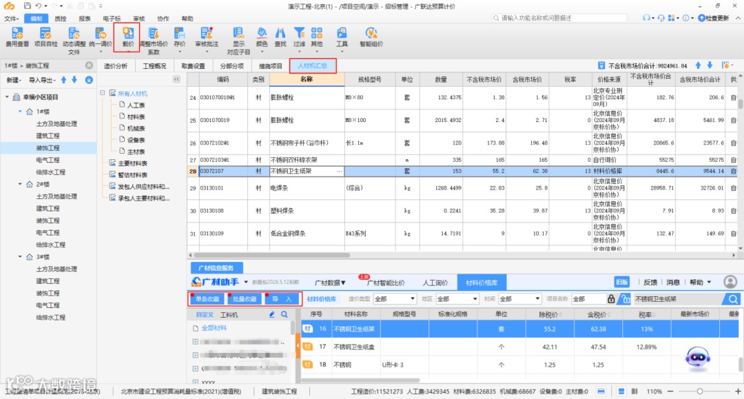 计价端编制清单调价时收藏无价材料或将询价单导入材料库,材料价格信息及时全员共享。无价材料库在投标时也能给业主提供差异化的价值。