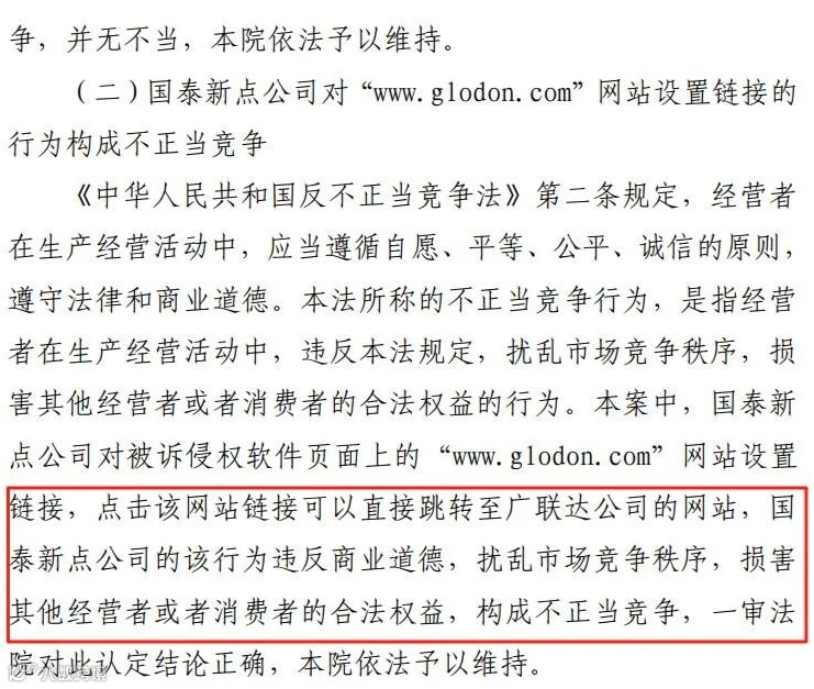 近日,广州知识产权法院就国泰新点软件股份有限公司(以下简称“国泰新点”)和金华某公司不正当竞争行为案件作出二审生效判决:维持一审判决,认定国泰新点实施了不正当竞争行为,要求国泰新点立即停止侵权及不正当竞争行为、赔偿损失,并要求其在官网和官方微信公众号刊登声明以消除侵权影响(判决书摘要附后)。