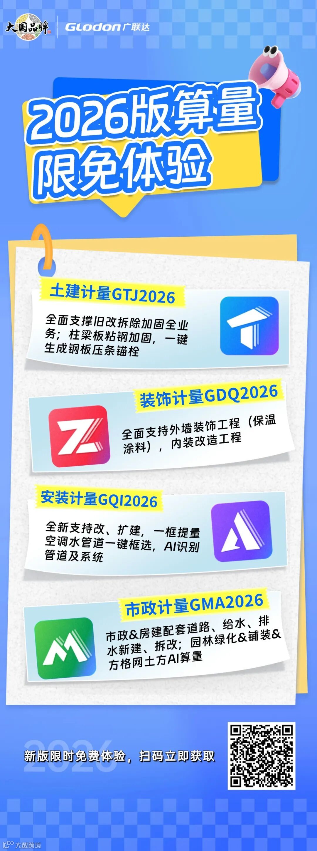 工程人福利!广联达2026算量4大软件(GTJ/GDQ/GQI/GMA)限免体验!