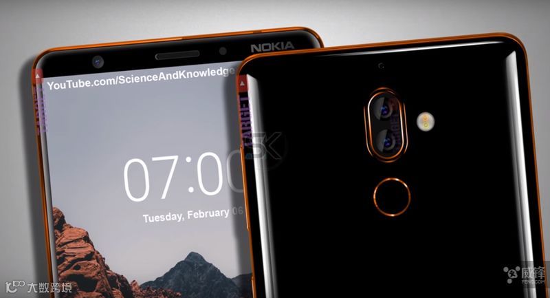 首先我们还是来看看曝光的渲染图, Nokia 7 Plus 采用了现在流行的18:9(待定)的全面屏设计,虽然可以看到“下巴”和“额头”的大小控制得非常好。同时背部也采用了玻璃背板设计、后置指纹识别和流行的双摄像头和双色温闪光灯,从外观配置上看,这部手机定位应该不低。