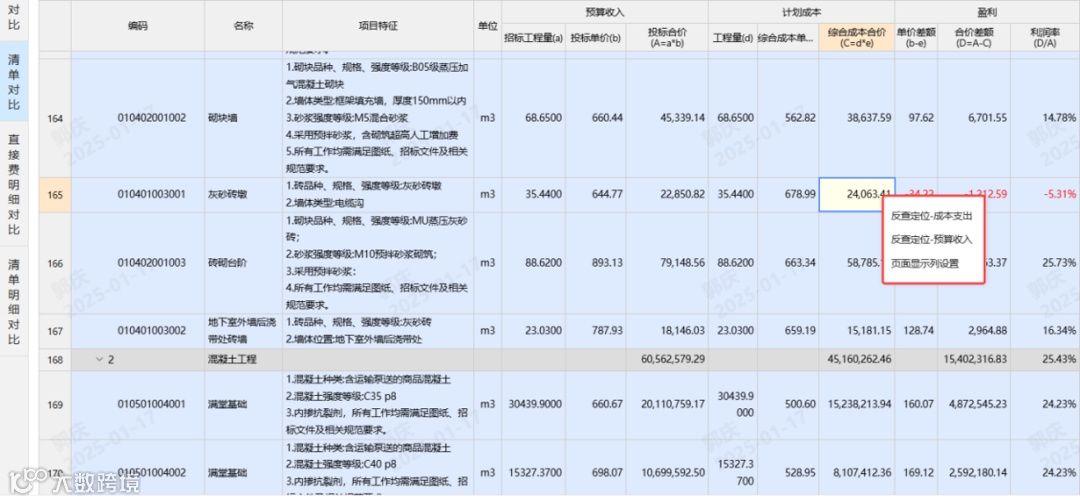 ✅多维度盈亏分析:自动汇总成本形成项目利润率,避免计算性错误,自动形成清单维度收支对比,确保标前测算对比数据更有效,指导报价合理调整。