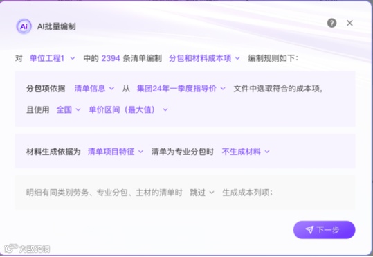 ✅AI+数据快速准确测算材料成本:AI自动提取主材并汇总工程量,企业价格/市场价格智能载价。