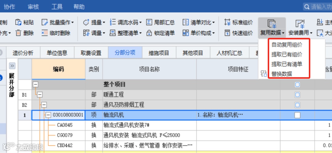 ✅复用组价:自动复用组价可以在完成一个单位工程编制后,相同清单组价可以快速批量复用到其他单位工程。