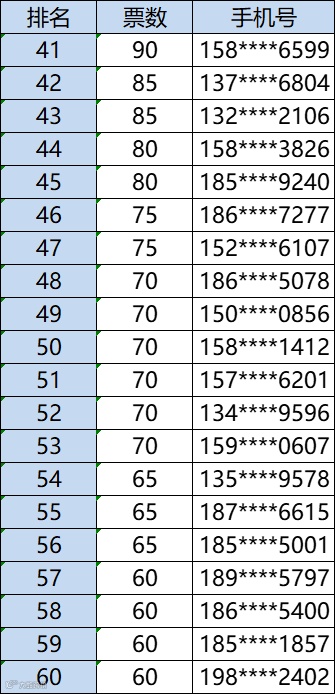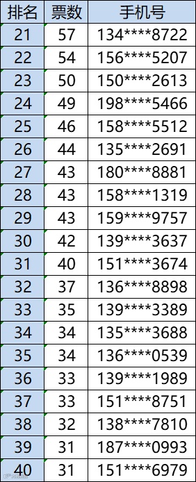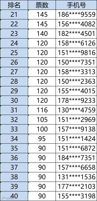 应援达人奖/拉票达人奖——获奖名单公布如下: