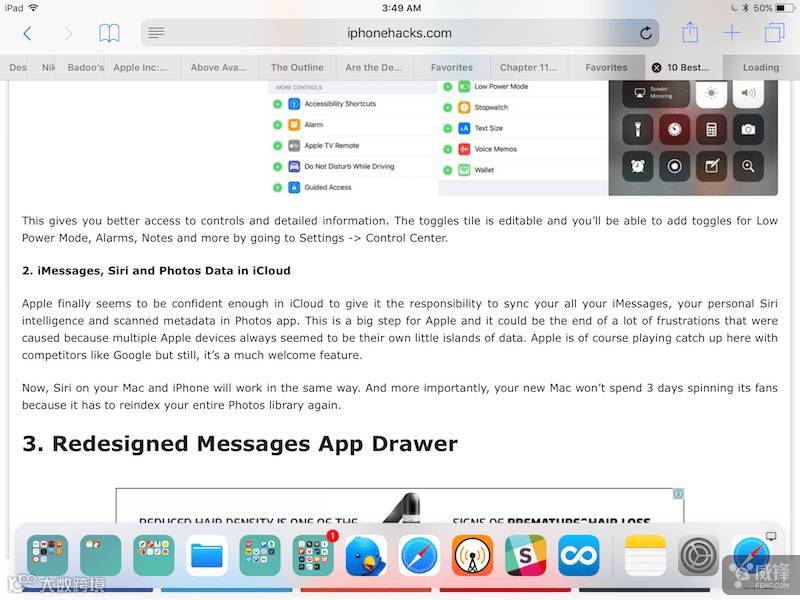 现在当你在 iPad 屏幕的底部向上滑动时,你将会看到 Dock 栏,或应用切换器。控制中心板块已经不见了,iPad 的控制中心现在已经被整合到了应用切换器中。