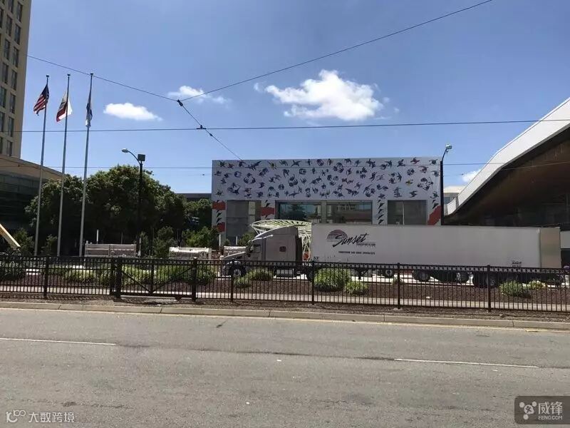 还有四天就是苹果的 2017 年世界开发者大会(WWDC),为了这场大会苹果已经准备了好久,现在是到最后一步了。目前苹果已经开始在圣何塞的 McEnery 会议中心外展开装饰工作。从网友分享的现场照来看,工作人员已经在会议中心外挂上了今年 WWDC 大会的海报、横幅、旗帜以及其他宣传材料。