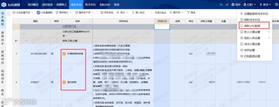 ③根据技术方案变化,快速【刷新计价依据】,一键更新清单并清晰标注差异,避免重复手动匹配。
