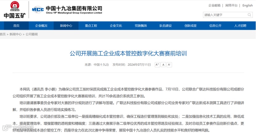 在培训内容正式讲解之前,由广联达科技股份有限公司成都分公司大客户经理何磊对中国十九冶专属服务团队进行了介绍,从赛事事务协调、技术解释答疑到作业工具培训等方面均安排专人对接,充分保障集团及各分公司赛事顺利实施。
