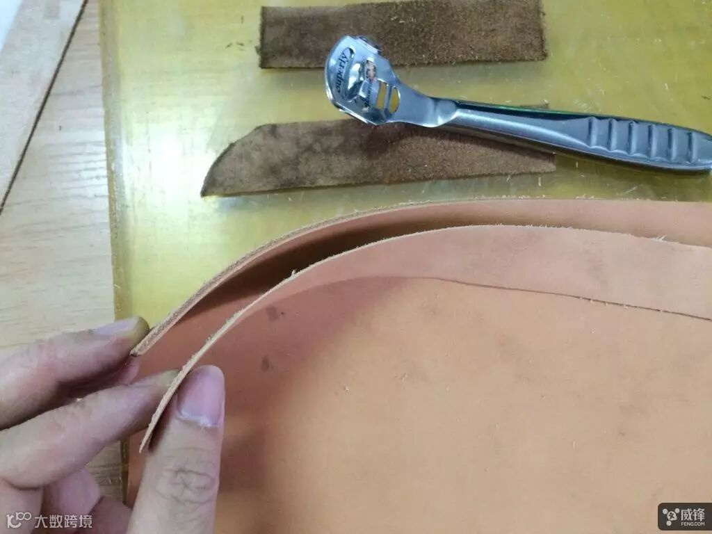 首先我们可以找一块自己喜欢的“边角料”,如果说这块皮料厚了的话,我们还可以在后面通过手工打薄一些。