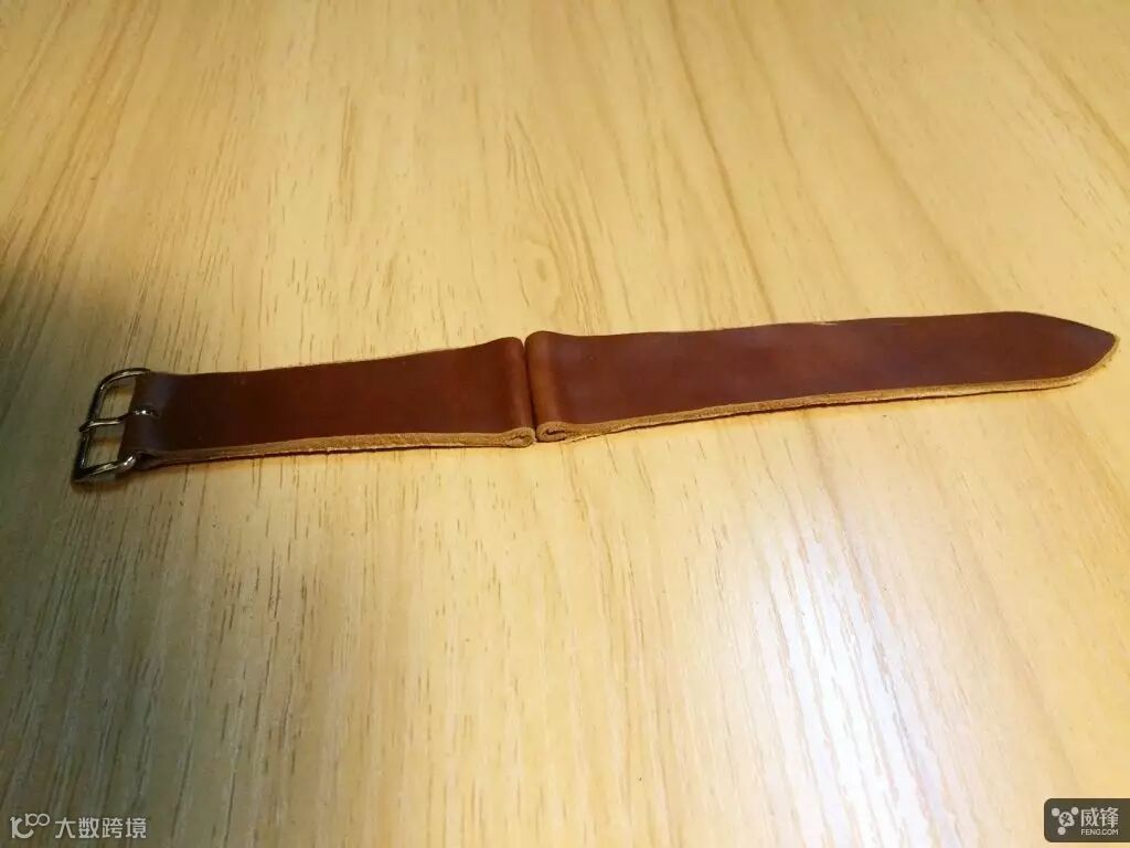锋友也提到,做完这个表带后才发现,手工打薄成了这个 DIY 过程中最大的败笔,因为打得不均匀,所以说如果其他朋友想要打薄材料的话,最好还是用那种专业的机子,自己手工打薄其实很难,而且皮带上坑坑洼洼也会影响质感。