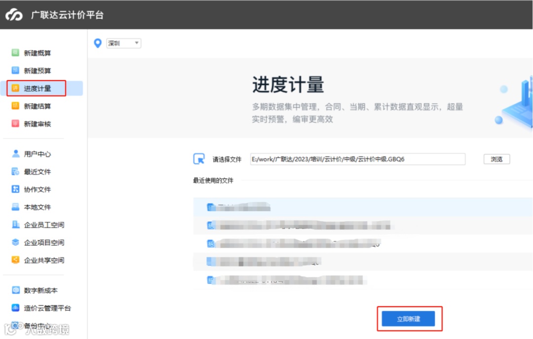 在云计价GCCP6.0里的【进度计量】模块,可以一键快速生成进度报量文件。